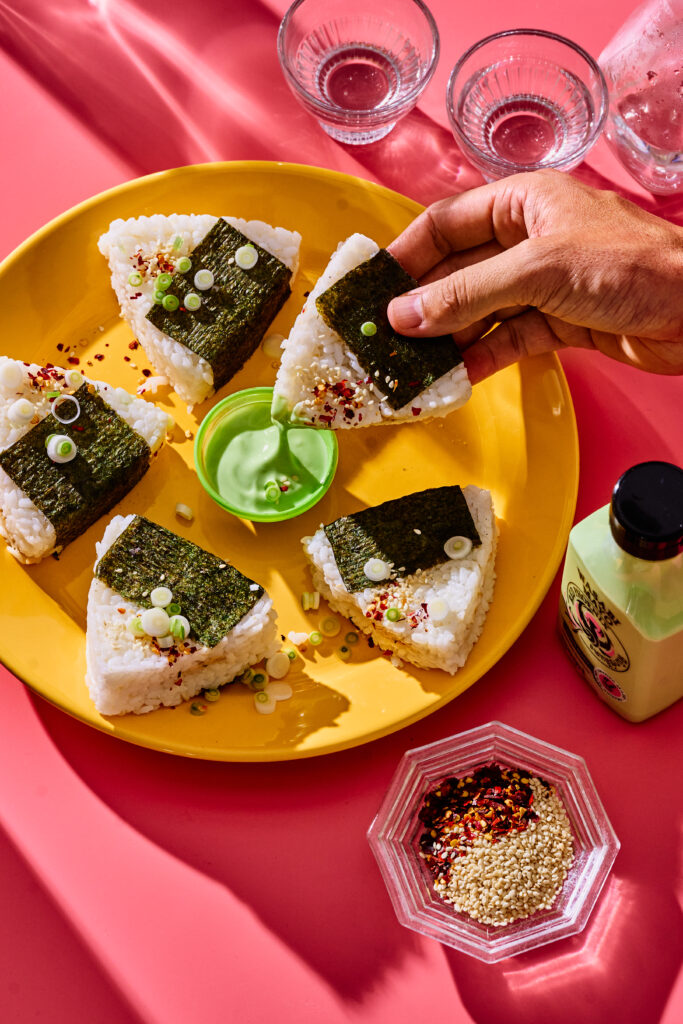 Cook the first layer in the pan, flip when brown, and build a new layer on top as in step 3. Repeat this one more time until your triple-decker grilled cheese is ready! Tip: place the lid on the pan at the end to melt the cheese. Top with Red Phoenix sriracha mayo and sesame seeds.